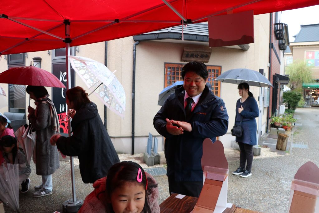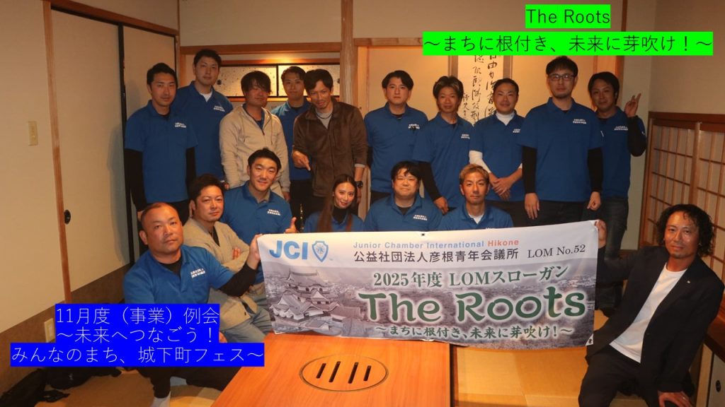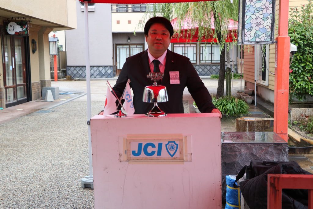 11月度(事業)例会~未来へつなごう!みんなのまち、城下町フェス~開催報告 2025.11.27 2025年11月9日(日)に11月度(事業)例会 ~未来へつなごう!みんなのまち、城下町フェス~を開催いたしました。 本例会はひこねに夢や希望が溢れ、魅力あるまちにしていくためには、若い世代が地域の歴史や文化、地域資源の魅力を再認識し、ひこねを支える多様な人の想いに触れる機会を創出するなかで、まちの未来を想う当事者意識を芽吹かせる必要があると考え、ひこねの魅力や仕事に親しみ、楽しみながら関わる中で、自ら地域を盛り上げる意識と誇りを育むことにより、多世代が繋がり、ひこねの魅力と想いを未来へ受け継ぐといった想いのもと開催させていただきました。 地域未来構築委員会委員長・米森 麗那君の開会宣言第72代山田理事長の点鐘で例会が始まります。 第72代山田理事長挨拶では、2市4町の魅力を伝える事業であり、彦根青年会議所の活動を知っていただく事業でもあるといったことを胸に一日を過ごしていただきたい。また、米森委員長の集大成となる本事業をメンバー全員で盛り上げたいと想いを語っていただきました。 続いて特別顧問挨拶では、不安定な天気でありながらも試行錯誤して開催した米森委員長の想いや、来場していただく方々の想いに応えてメンバーで事業を成功させたいと伝えていただきました。 当日は朝から雨が降る中でしたが、着々と準備を進めていきます。 本事業に協力いただいたキッズ委員会の方々も早くから準備に来られていました。雨にも負けず熱い想いでキッズ商店街の設営をしてくださいました。 10時になり続々と参加者が来場されました。 雨天によりステージアクトの大半は中止となりましたが、職業体験やキッズ委員会には多く方が参加してくださり、事業を盛り上げてくださいました。山田理事長もキッズ商店街で子どもたち考案のゲームに挑戦し楽しんでいただきました。 四番町スクエアでの開催ということもあり、ひこにゃんやふーたんも駆けつけていただきました。カッパ姿のひこにゃんや、大きな傘を持ったふーたんはなかなかお目にかかることはできないので参加者の皆さんはカメラを構え、ベストショットを狙って奮闘しておられました。 そして、本事業の目玉でもある大人気インフルエンサーむめいちゃんのライブが始まります。たくさんの方が、ステージに集まり大盛り上がりです。今回のステージアクトでは、キッズ委員会の子どもたちが司会者としてマイクを握る場面もあり、貴重な経験をしていただきました。 ライブ後もキッズ委員会の子どもたちによる地域の魅力PRタイムや、滋賀県立大学軽音部の方々によるライブで事業を盛り上げていただきました。 事業を終えて、最も印象に残ったことは子どもたちの笑顔でした。キッズ委員会で頑張った子も参加者として来場いただいた子も本気で頑張り、本気で楽しんでくれたのではないかと思います。本事業が地域のたくさんの方にとって愛郷心や成長に繋がったと感じていただけたら幸いです。 片付けも終わり、監事所感をいただきました。 本事業は雨の中での開催となりましたが、たくさんのご参加ありがとうございました。ご協力いただいた関係諸団体やステージを盛り上げてくださった多くの方々にも厚く御礼申し上げます。 今後も彦根青年会議所は多くの活動で地域を盛り上げていきたいと思います。よろしくお願いいたします。 月報11月号 前の記事